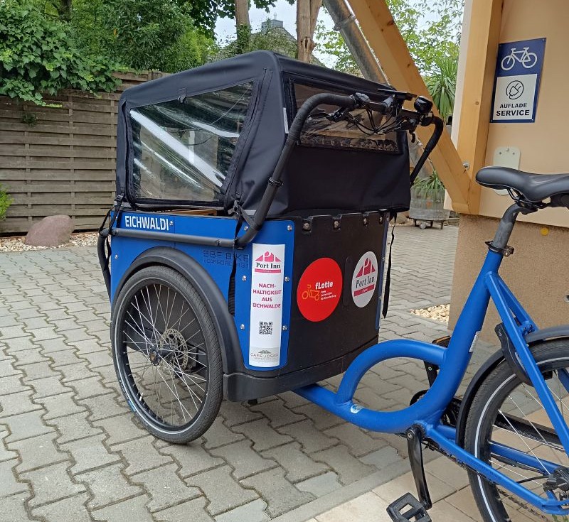 EichWaldi ist ein dreirädriges BBF eCargorider, dessen Transportkiste 87,5 cm lang und 77 cm breit ist. In der Transportkiste finden sich Sitzplätze für bis zu vier Kinder.