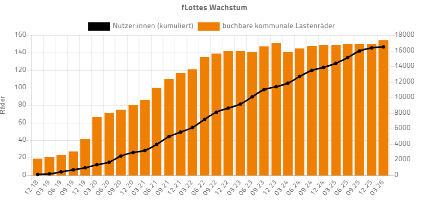Seit dem Start im Herbst 2018 waren bisher 16847 Nutzer:innen an 122056 Tagen mit einem der insgesamt 170 Lastenräder der kommunalen fLotte unterwegs.